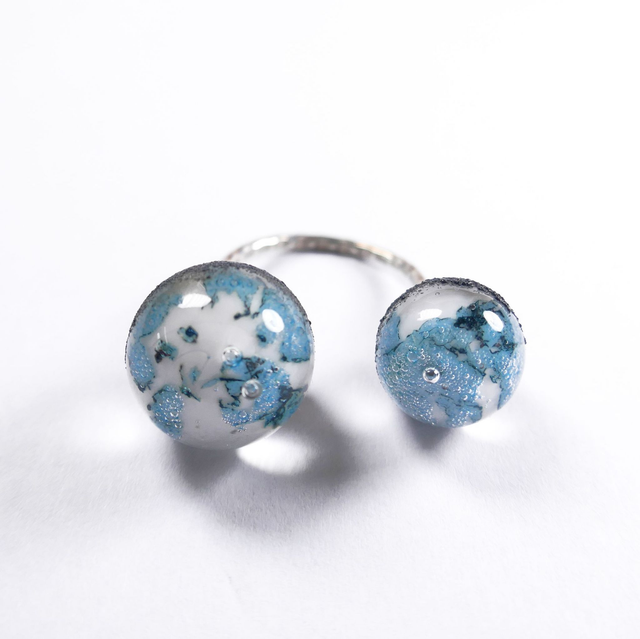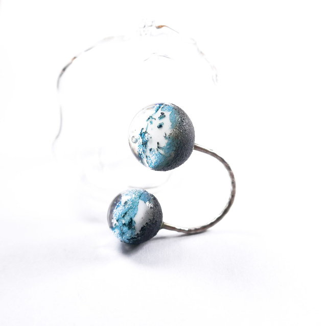 Bague en verre filé à la flamme, montée sur un anneau d'argent massif 925. Chaque pièce est fabriquée à la main en utilisant des techniques d'artisanat du verre chaud. Le processus de fabrication rend chaque pièce légèrement différente de la suivante. Les dimensions peuvent varier.