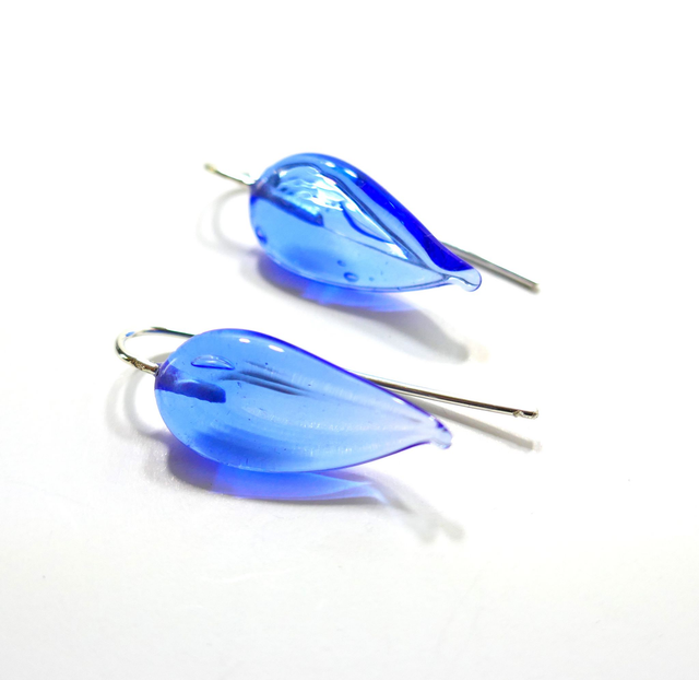 Boucles d'oreille en verre filé à la flamme, monté sur un fil d'argent massif 925. Chaque pièce est fabriquée à la main en utilisant des techniques d'artisanat du verre chaud. Le processus de fabrication rend chaque pièce légèrement différente de la suivante. Les dimensions peuvent varier.